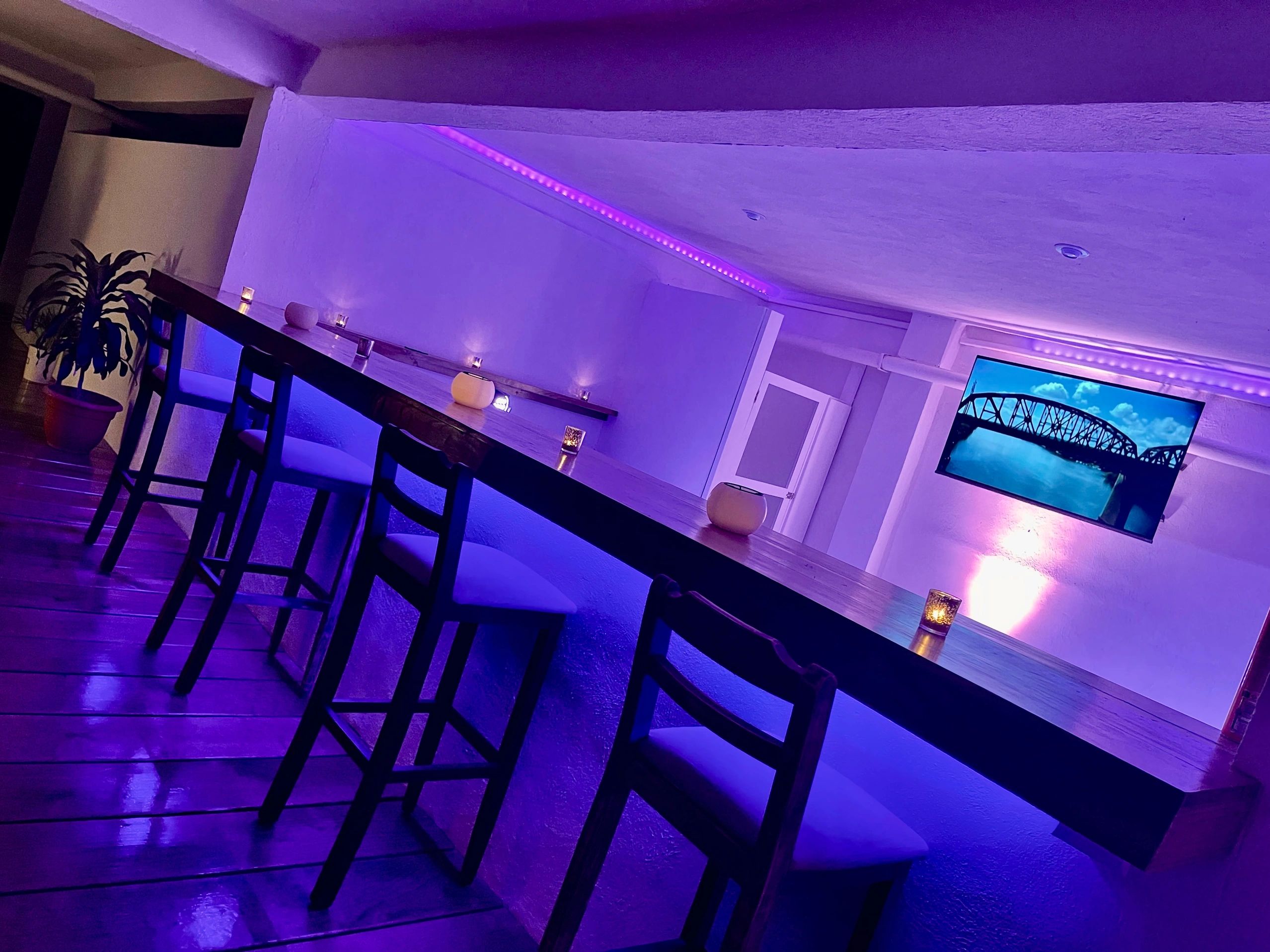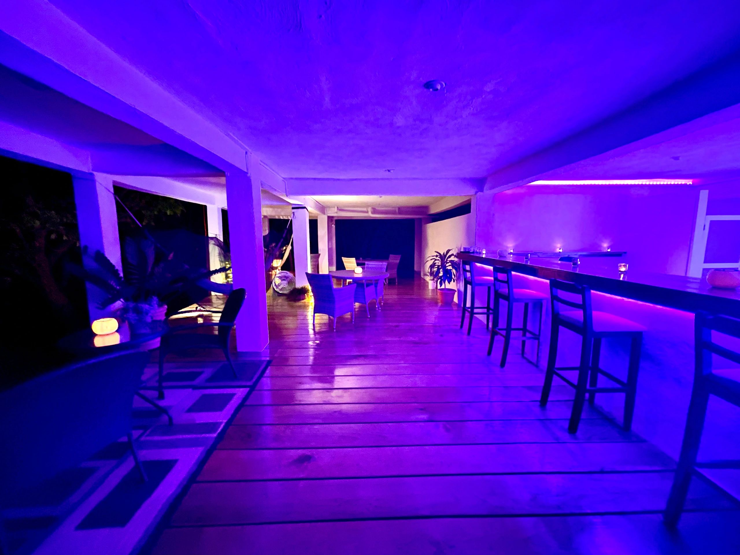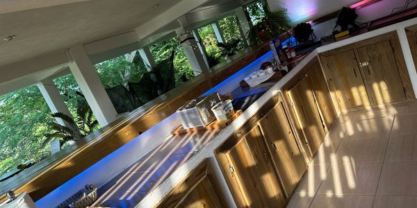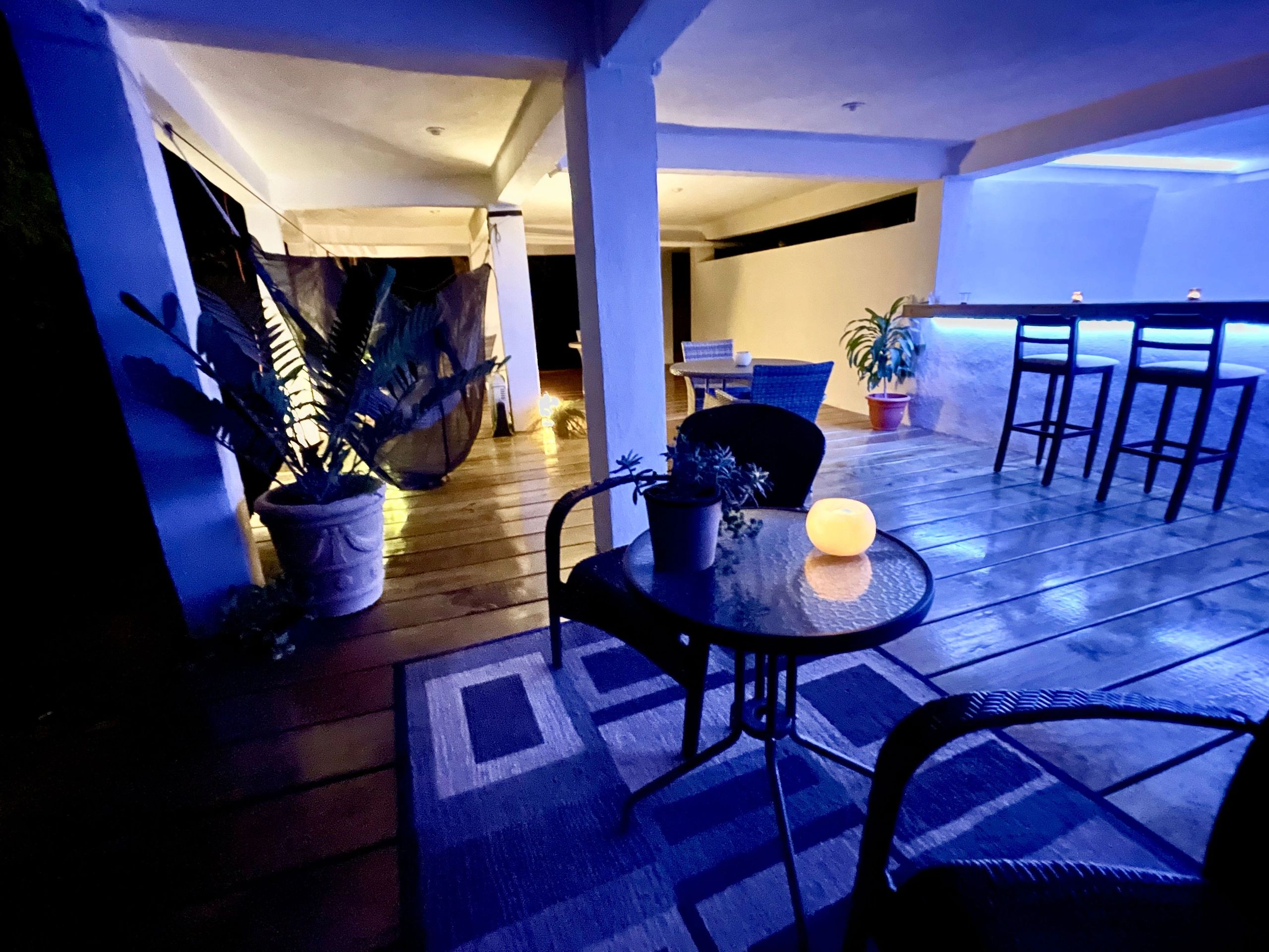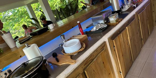 The lower level of Mission Home #1 can accommodate up to 35 people comfortable inside and another 65 outside. There is FREE Wifi, 1 large Smart TV, mood lighting, plenty of seating, and a large food-serving station. There is a mens bathroom downstairs with 2 more full size bathrooms upstairs.
